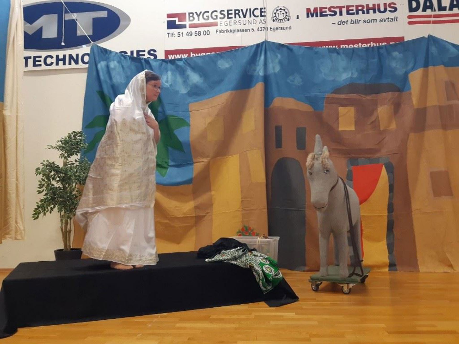 Denne uken har alle i barnehagen fått være med på påskevandring. Halvparten tirsdag og resten onsdag. På tirsdag var de eldste på småbarn med som statister og tok imot Jesus, da han kom ridende inn på palmesøndag. På onsdagen var alle barna på gullklumpen med og hadde ulike roller, da hadde de først fått sett hvordan det var på tirsdagen, for så å være med å spille det for de andre barna på onsdagen. Vi hadde to veldig kjekke og stemningsfulle vandringer igjennom påskens evangelium.