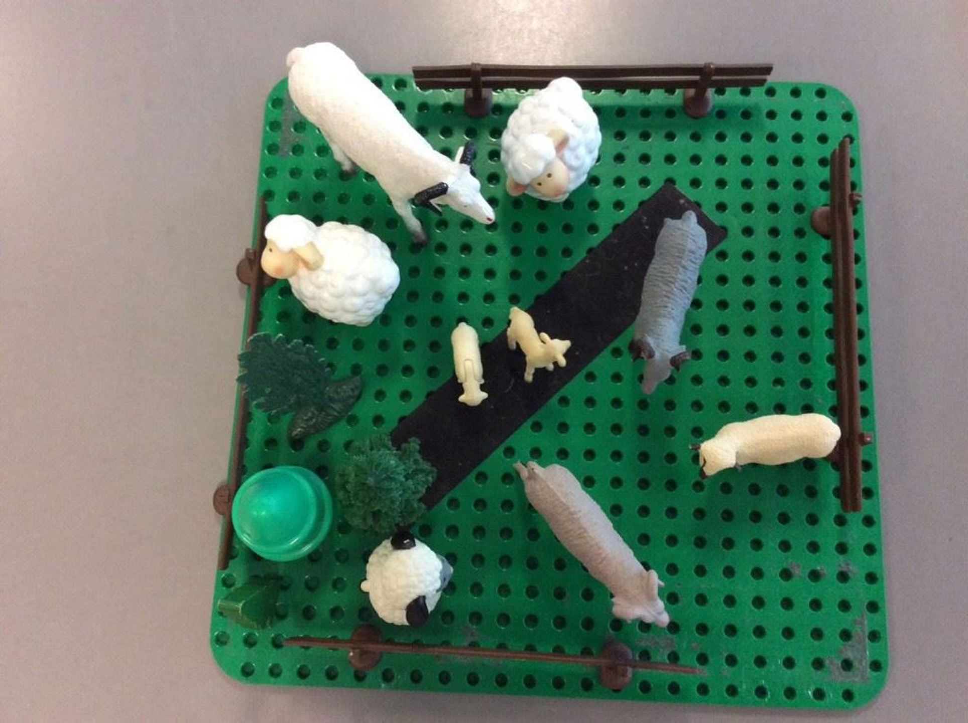 På den ene småbarnsavdelingen er de godt igang med sauen som forsvant. De voksne har fortelt historien, barna har vært med å dramatisere, synge sanger, lage kunstverk med ull og prøvd seg på toving.