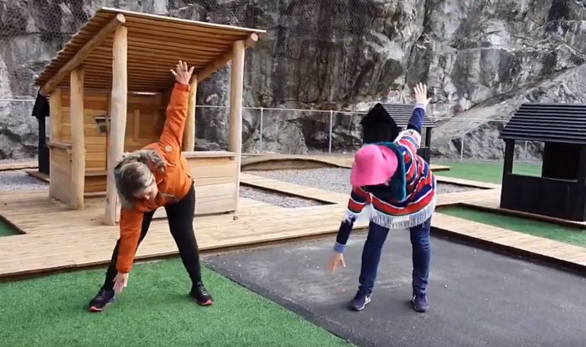 Uteområdet vårt står tomt og venter på at barna skal kommetilbake og leke, i mellomtiden tok HoppeGuri og Heidi seg en trim rundt i Hinderløypene. Se på linken under bildet!!!