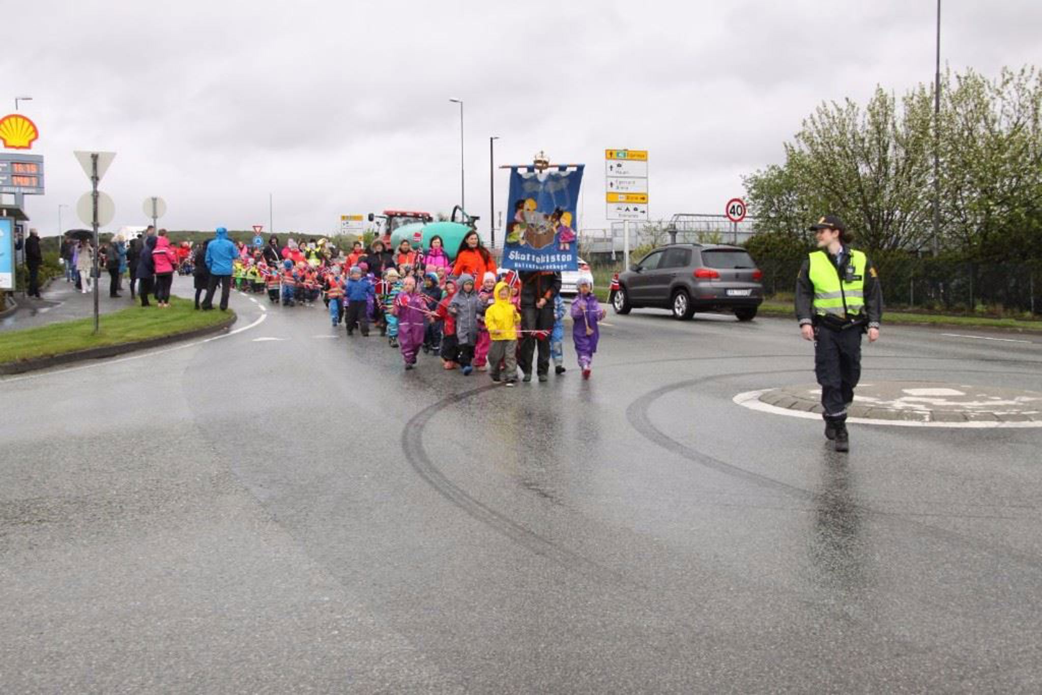 "Skattekisten barnehage, hei! hei! hei! Ingen barnehage er som deg! Hurra!" - sang barna i 16.mai toget fra barnehagen ned til Kjerjaneset bo- og service senter.