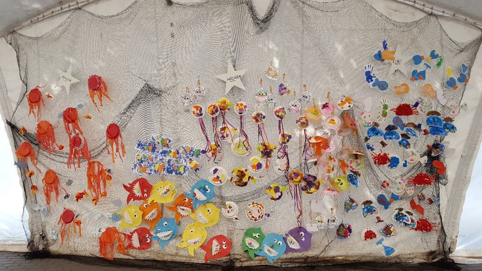I løpet av torsdag og fredag har nesten hele barnehagen vært nede i byteltet og pyntet med ulike skapninger fra havet.Ta turen innom i helga og se på barnas flotte kunstverk.