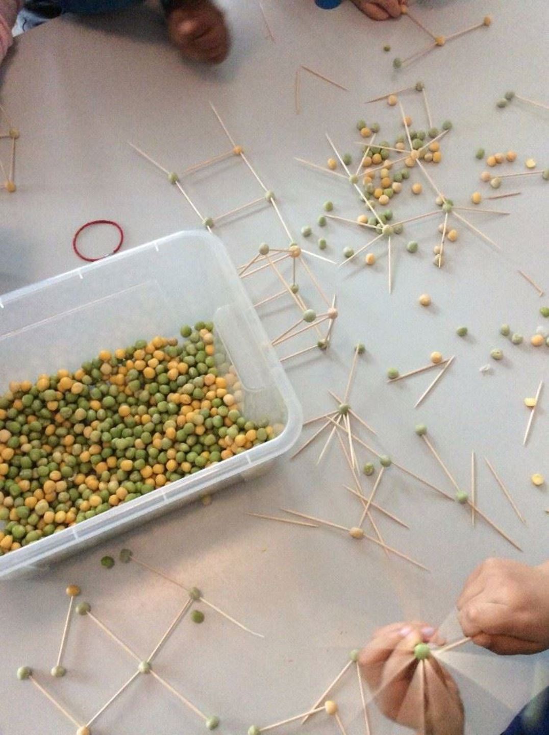 Sanse, skape, leke! For barna i Skattekisten er det ikke mer en erter og tannpirkere som skal til for å lage flotte kunstverk! (Se flere bilder inne på lukket nettside)
